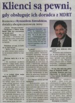 Ryszard Zawadzki Doradca ds. ubezpieczeń i inwestycji Aviva (dawniej pod nazwą Commercial Union) Obsługuje ponad 1 tysiąc klientów. Jest wielokrotnym członkiem MDRT (Million Dollar Round Table), międzynarodowej, niezależnej organizacji zrzeszającej najlepszych specjalistów na świecie w zakresie ubezpieczeń na życie i długoterminowych oszczędności. Członkostwo w tej prestiżowej organizacji jest gwarantem profesjonalnej obsługi, wiedzy, doświadczenia oraz przestrzegania najwyższych wartości kodeksu etycznego.